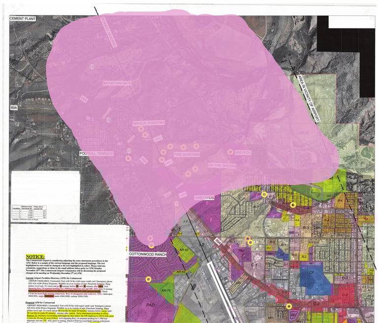 Add to this the changes in the AGL made by Cottonwood in 2022, which extended the regular traffic pattern beyond the indicated area on the published airport disclosure map, deep into the Town of Clarkdale.